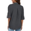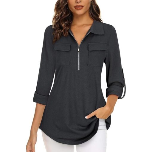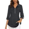 Gemulate Women’s 3/4 Sleeve Zip V-Neck Floral Tunic Blouse – Dark Grey