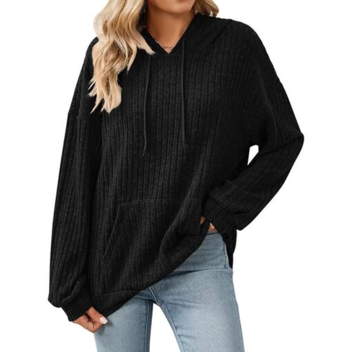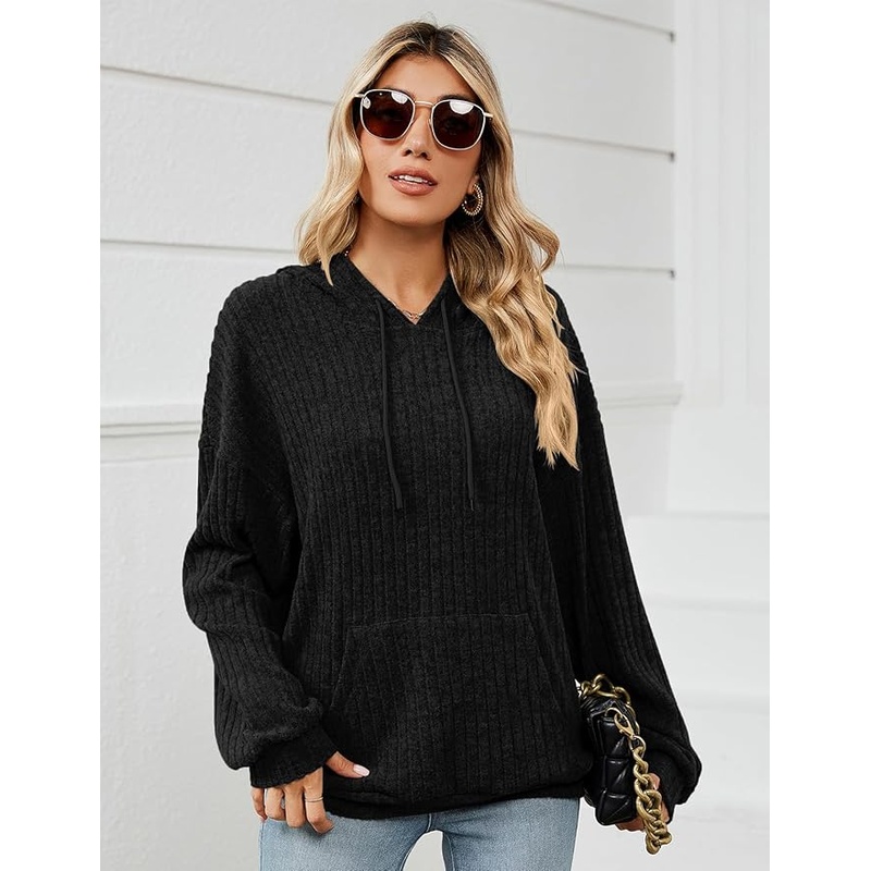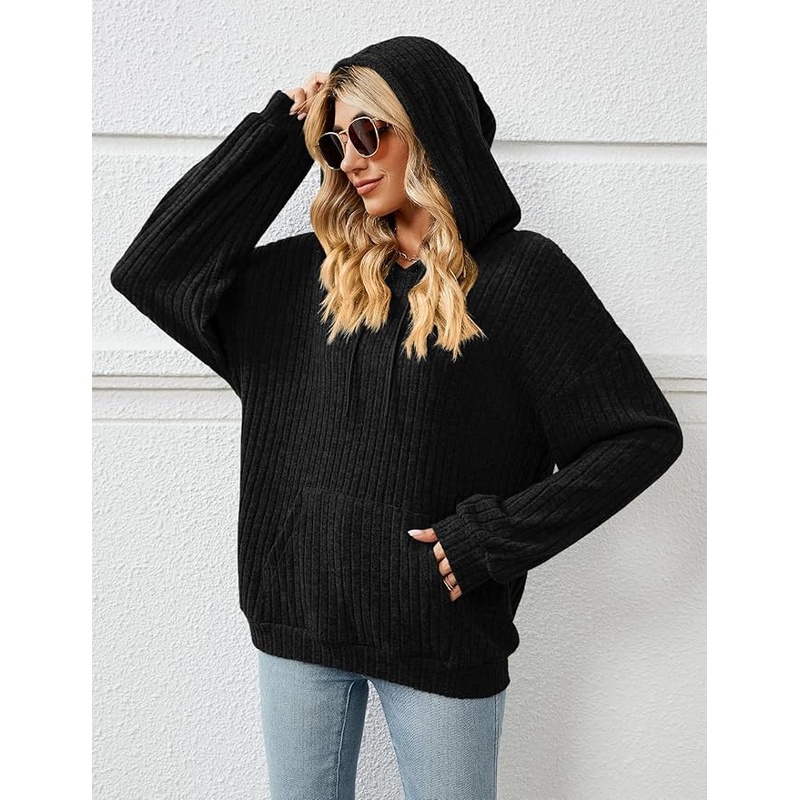 Gemulate Women’s Lightweight Hoodie Sweatshirt Long Sleeve Jumper – Black