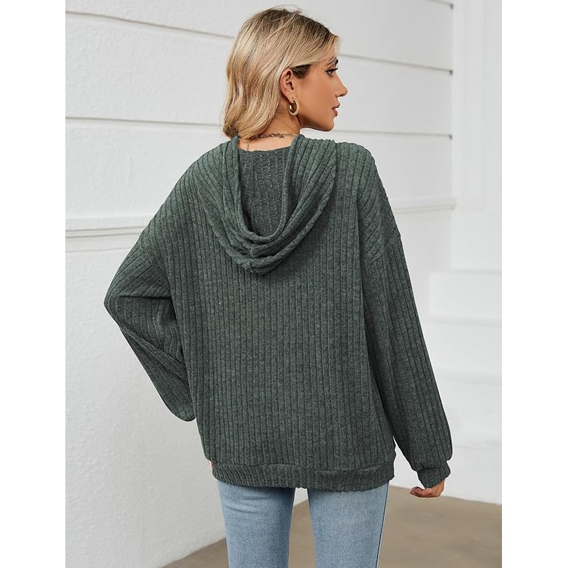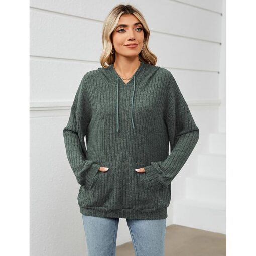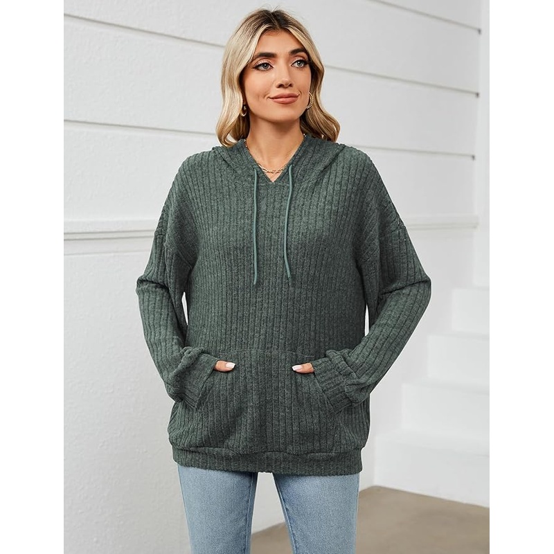 Gemulate Women’s Lightweight Hoodie Sweatshirt Long Sleeve Jumper – Dark Green