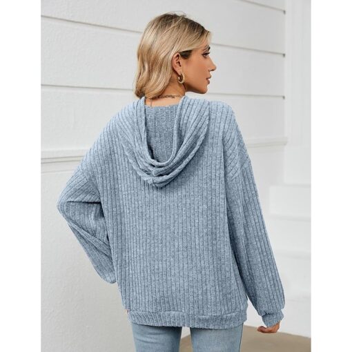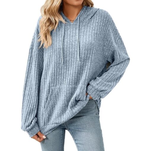 Casual loose-fit jumper designed for comfort and versatility. Suitable as both a lightweight sweater and hoodie, easy to layer in cooler weather.