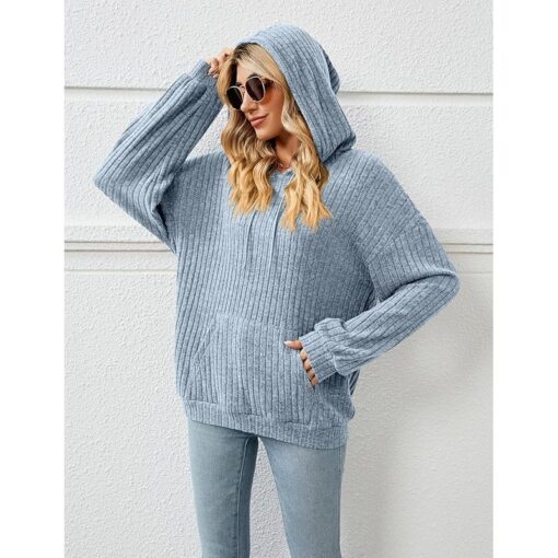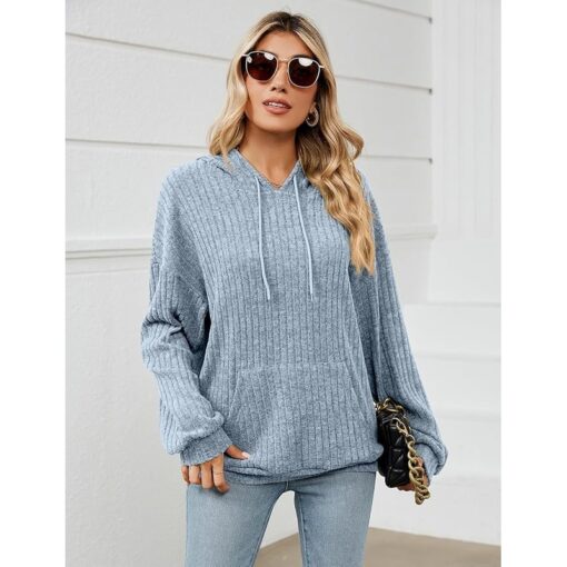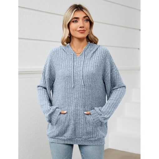Gemulate Women’s Lightweight Hoodie Sweatshirt Long Sleeve Jumper – Light Blue